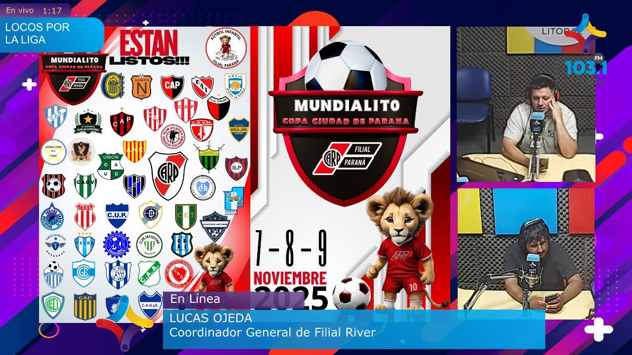 El coordinador de la Filial River Paraná, Lucas Ojeda, habló en el programa «Locos X la Liga» (FM Litoral 103.1 MHz) sobre la organización del próximo «Mundialito» que se celebrará en el predio de la Liga Paranaense de Fútbol este fin de semana.