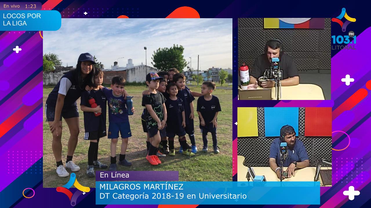 Milagros Martínez, en la charla por FM Litoral 103.1 Mhz, contó sus sensaciones de entrenar y enseñarles a niños categorías 2018 y 2019. Habló sobre sus primeros pasos en el deporte y de esto detalló: «Fue un muy buen año, hemos podido participar de varios torneos, estoy trabajando en conjunto con Gabriel Martínez».