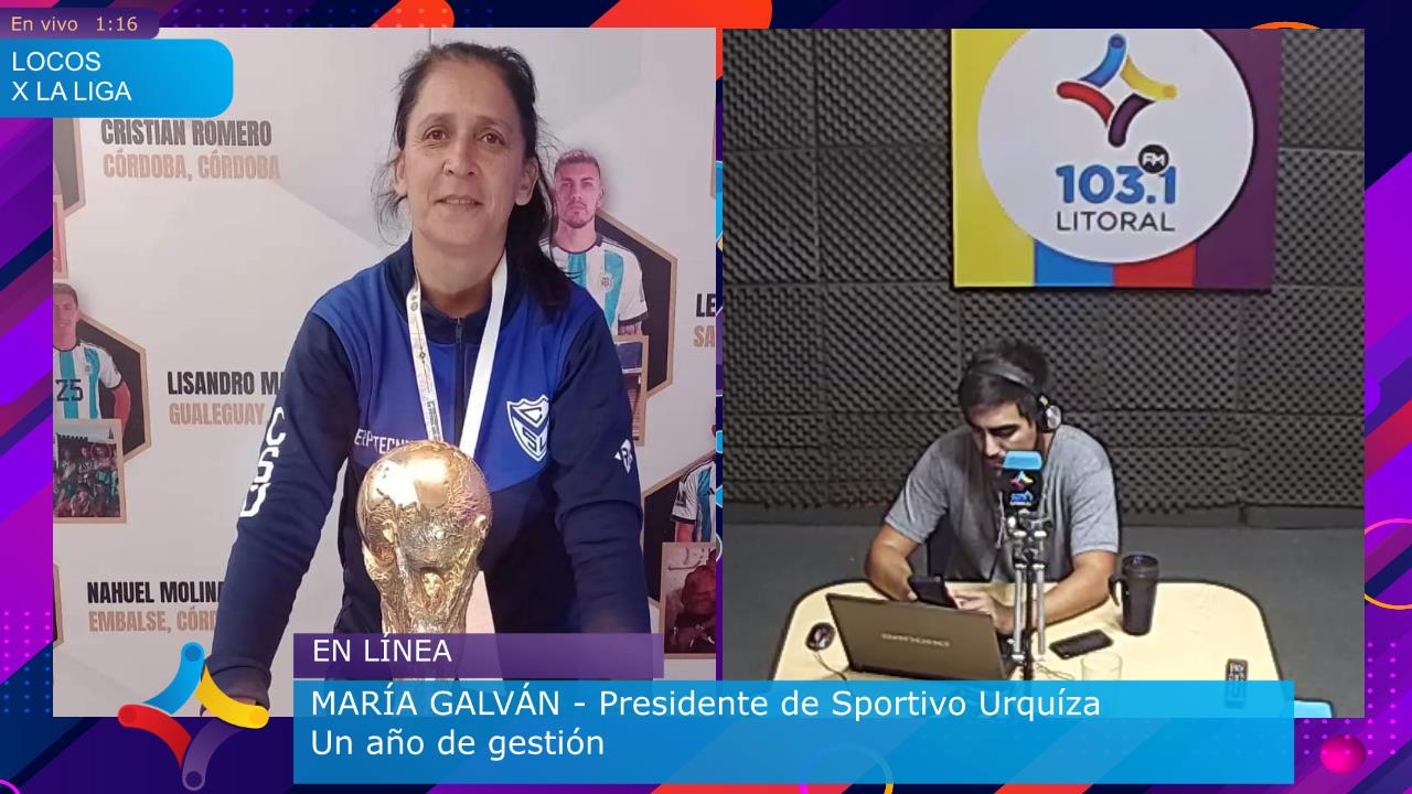 María Galván completó un año siendo presidente de Sportivo Urquiza y no ocultó su felicidad en redes sociales, cómo también al aire de FM Litoral (103.1) en Locos por la Liga, el programa oficial de la Liga Paranaense de Fútbol: «Estoy muy feliz de haber cumplido mi primer año cómo presidenta», señaló.